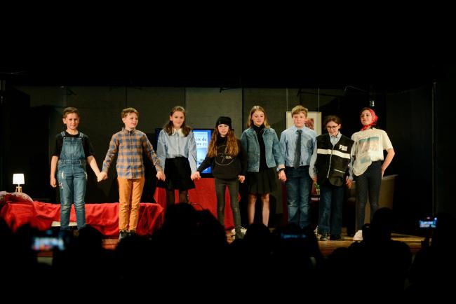 Les enfants de l'atelier théâtre proposé par Johanne Darcheville au Centre culturel de Couvin proposent leur...